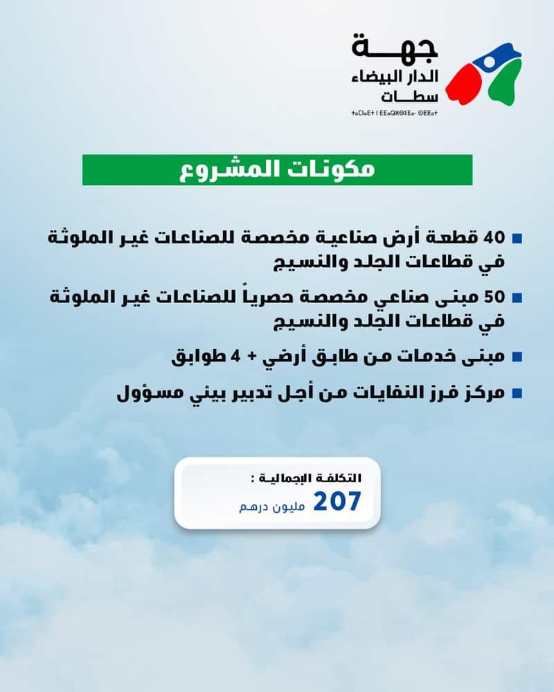 إطلاق المنطقة الصناعية أهل الغلام – قطب صناعي حديث بجهة الدار البيضاء-سطات ! استثمار نوعي بقيمة 207 مليون درهم مخصص لإنشاء: